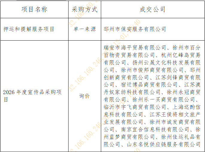 江蘇邳州農村商業銀行股份有限公司押運和提解服務等項目招標集采工作已經按照法定程序結束,現將采購結果公示如下: